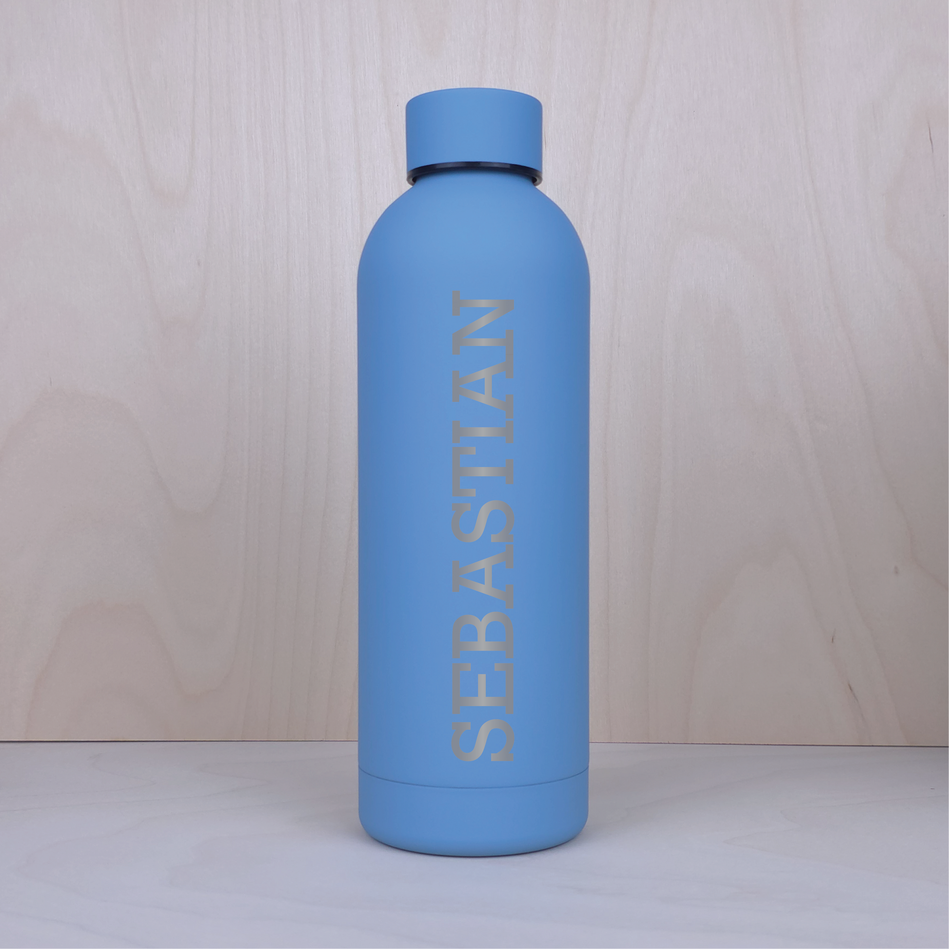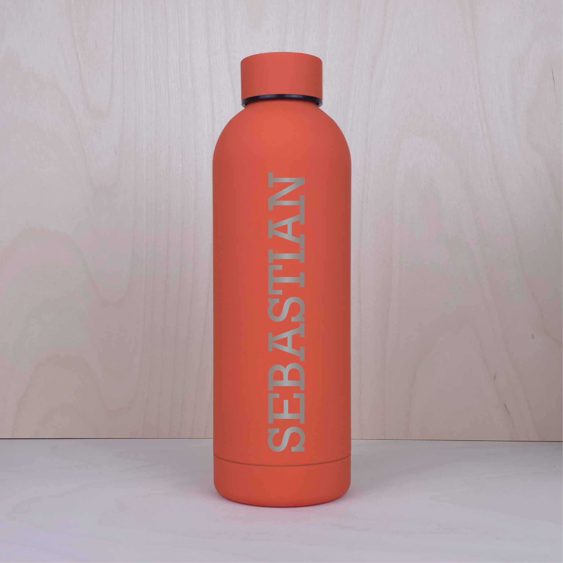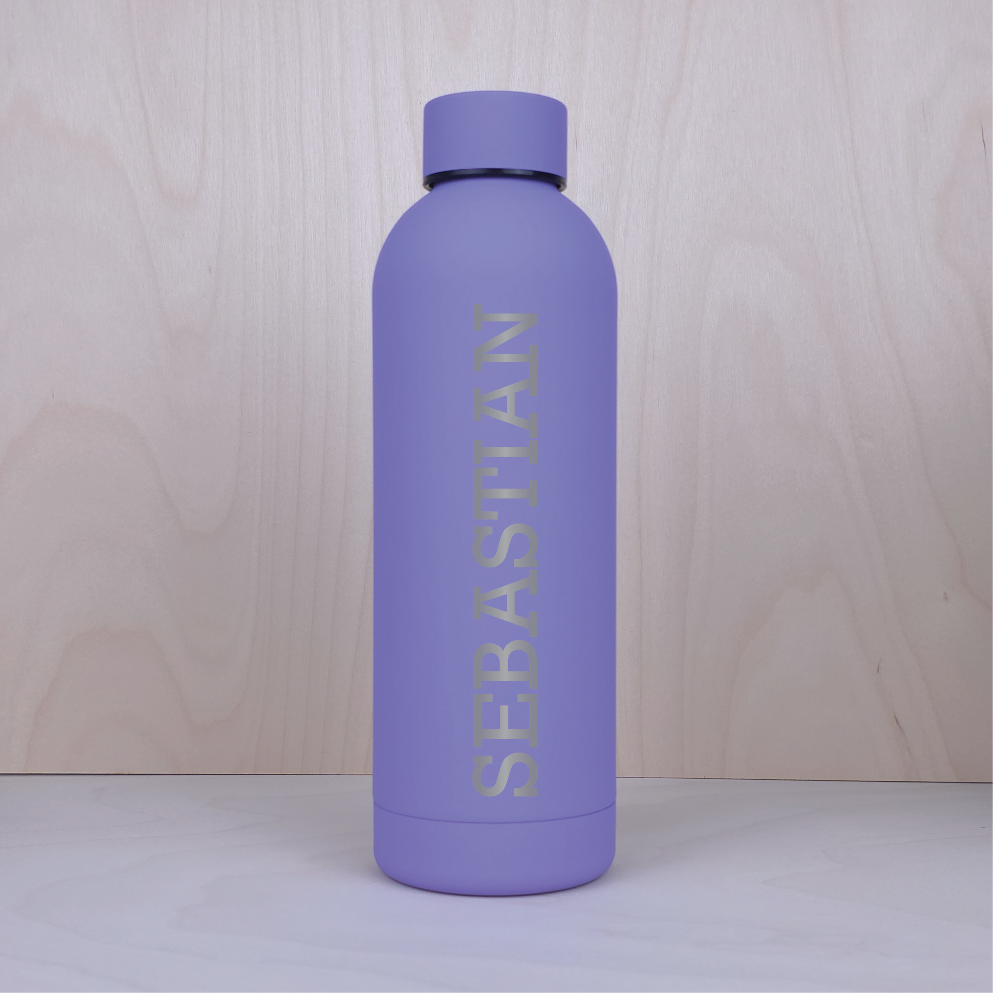 Saatavilla 10 tyylikästä väriä. Pulloon voidaan laserkaivertaa nimi tai logo ja yli 10 kappaleen erissä on mahdollista saada oma värillinen painatus pulloon. Isommista eristä pyydä tarjous: info@puuki.fi