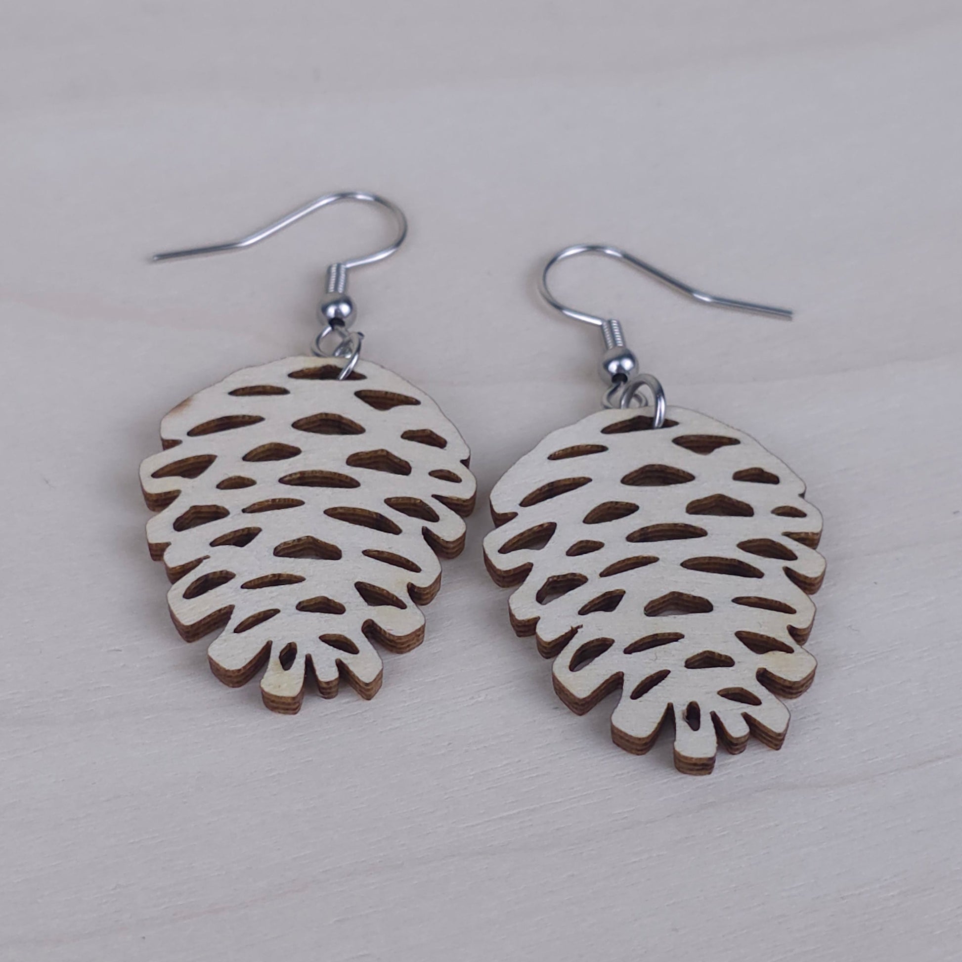 Nämä ihanat käpy -korvakorut tuovat jouluista iloa ja keveyttä tyyliisi. Korvakorut valmistetaan kotimaisesta koivuvanerista, joka laserleikataan tarkasti ja käsitellään kestämään arjen käyttöä.