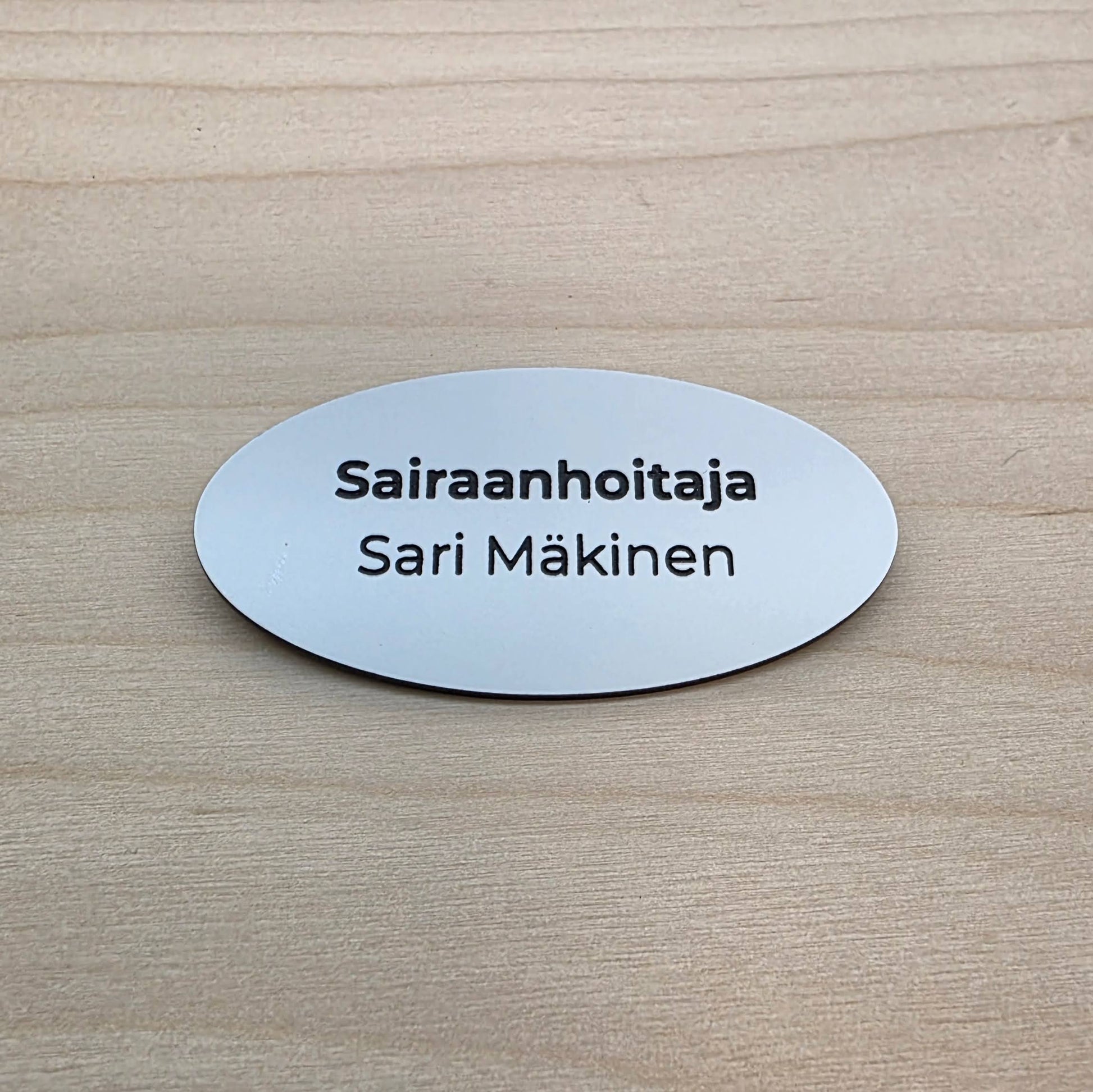 Perinteinen muovinen nimikyltti on selkeä ja ammattimainen valinta työasuun tai tapahtumiin. Valmistamme kyltit Nousiaisissa kestävästä kaiverrettavasta muovista, jossa laserkaiverrus tuottaa terävän ja pysyvän tekstin. Voit lisätä nimen, ammatin ja logon, jolloin ilme on yhtenäinen koko tiimillä.