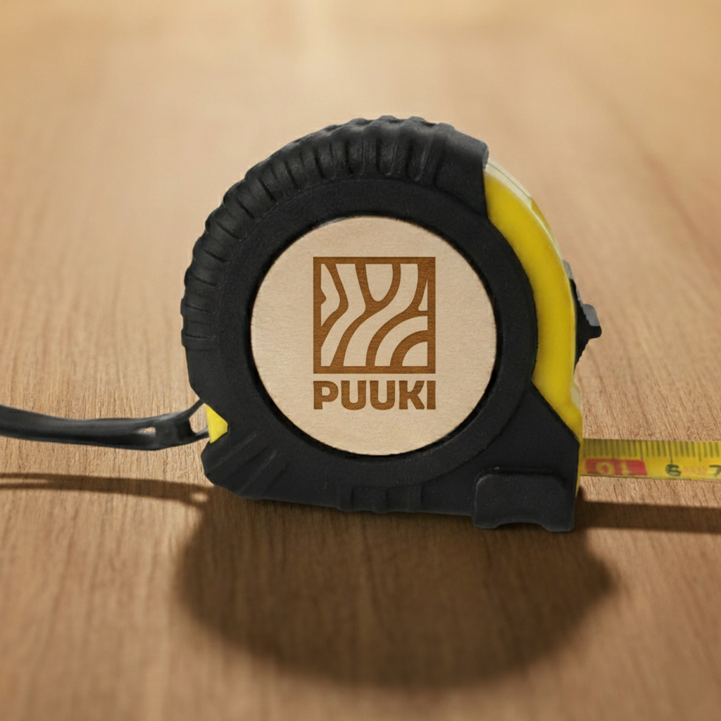 Kolmen metrin rullamitta, jonka keskelle on kiinnitetty kotimaisesta koivuvanerista valmistettu kiekko. Vanerikiekkoon voidaan laserkaivertaa haluamasi teksti tai logo, mikä tekee tuotteesta yksilöllisen ja käytännöllisen lahjan.