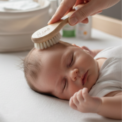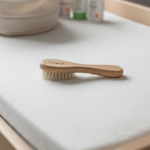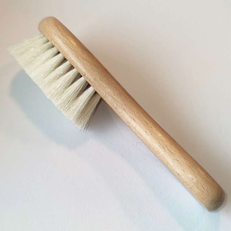 Tämä kaunis ja hellävarainen vauvaharja on valmistettu kestävän pyökkipuun varresta ja pehmeistä vuohenkarvaharjaksista. Luonnolliset harjakset tekevät harjauksesta erityisen lempeän, sopien täydellisesti vauvan herkälle päänahalle ja ensihiusten hoitoon.